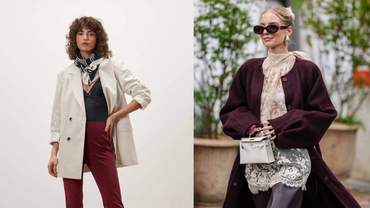 Auch spannend: Farbliche Gegensätze. Curry, Waldgrün, Dunkelblau – sie bringen Tiefe ins Outfit und lassen den Beerenton noch stärker wirken. Wer’s harmonisch mag, bleibt im Ton-in-Ton-Spiel mit Rot- und Rosénuancen.